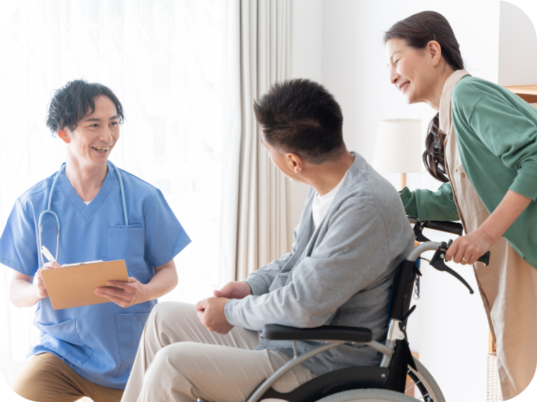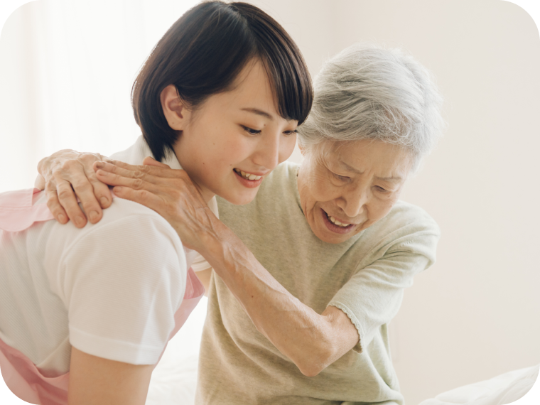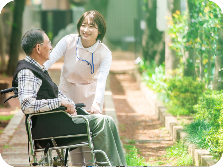 ご利用者様の身体状況に合わせたケアで、入浴・排せつ・食事など日常生活を安全にサポートします。